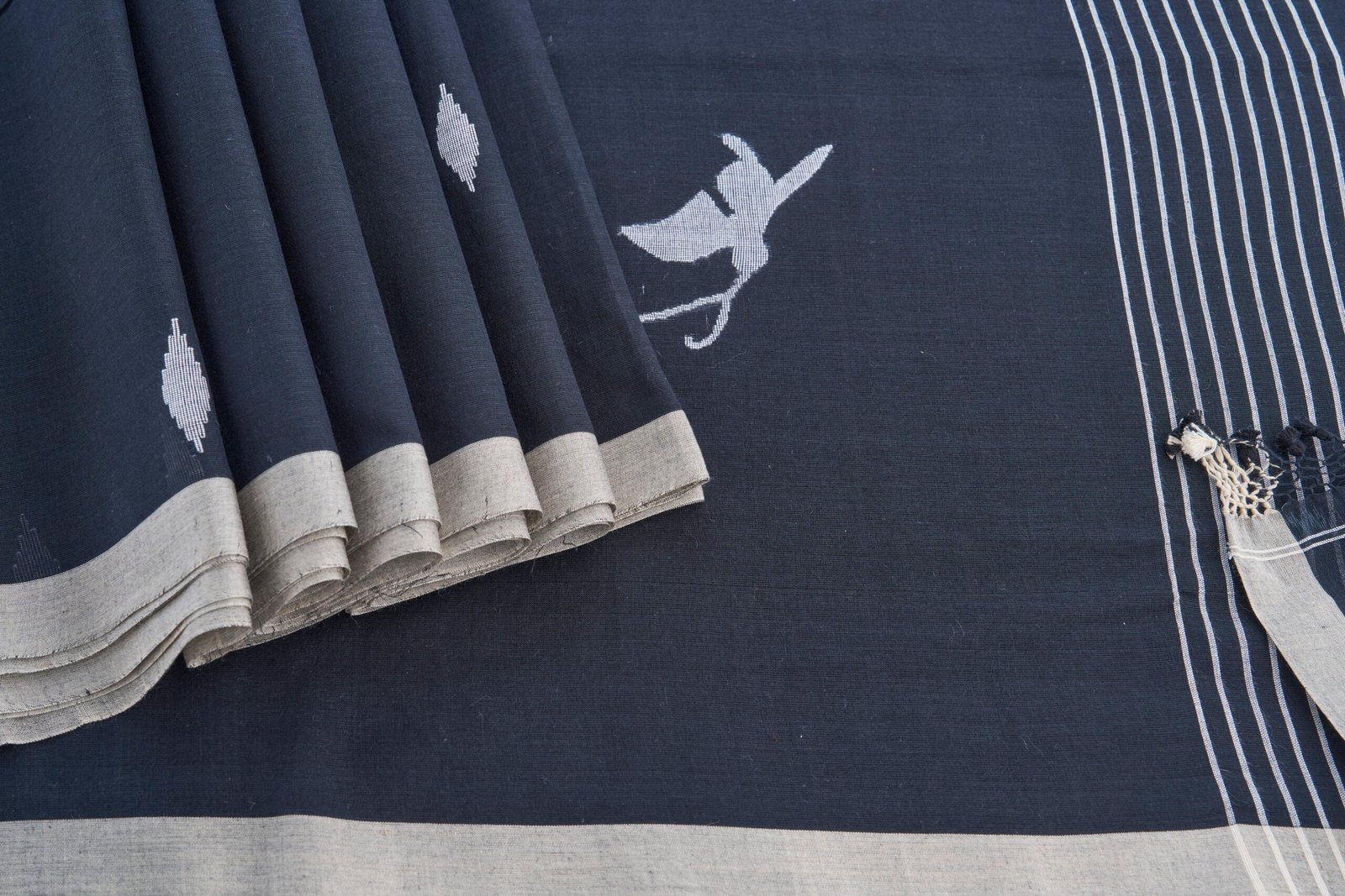 Our Black Handloom Cotton Jamdani Saree is more than just clothing—it’s a story of craftsmanship and authenticity. Pair it with statement jewelry or subtle accessories to elevate your style effortlessly. Whether as a thoughtful gift or a personal indulgence, this saree embodies trust, tradition, and timeless beauty, making it an essential part of any saree enthusiast’s collection.