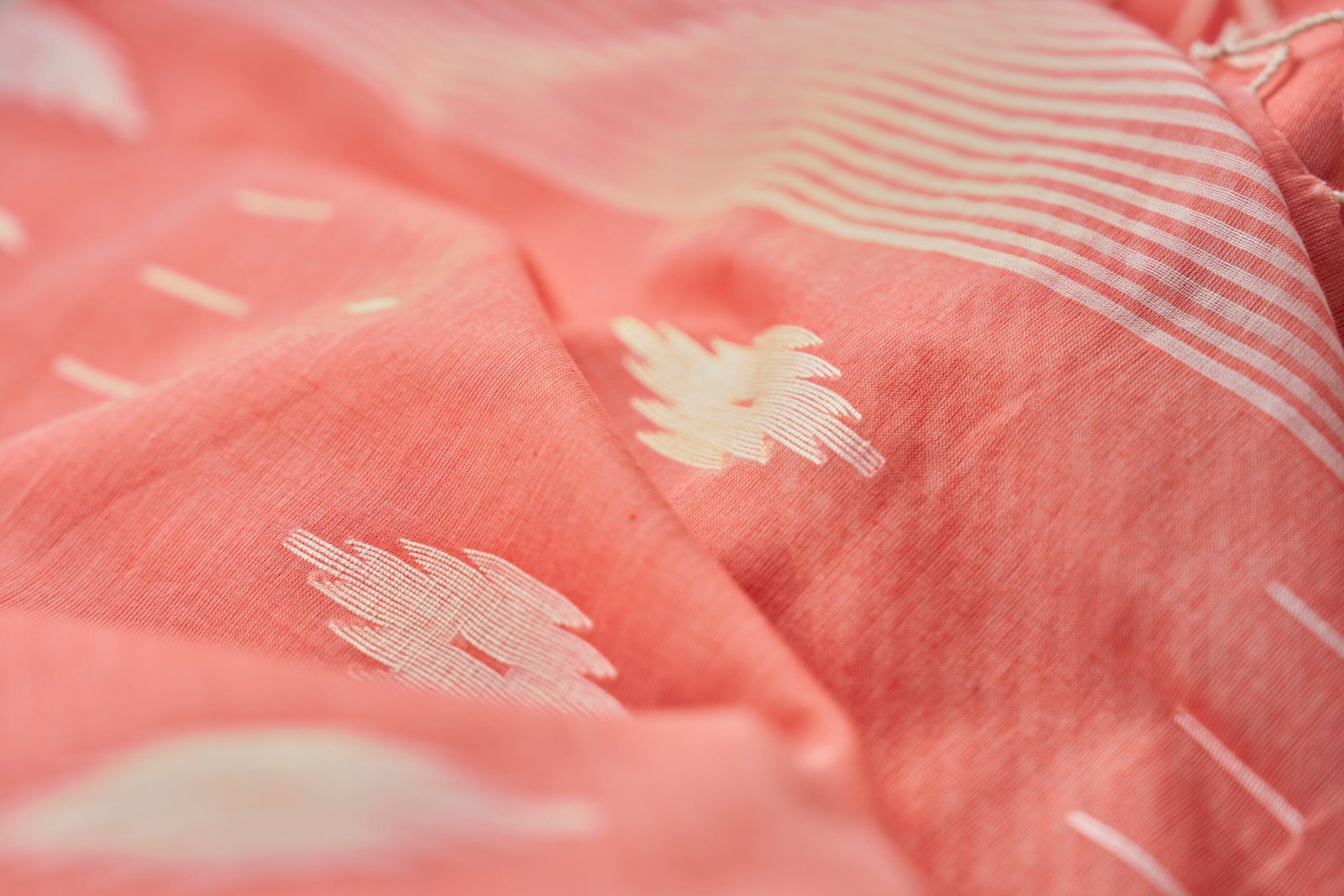 Be the first to review “Coral Peach Pure Cotton Jamdani Handloom Saree”