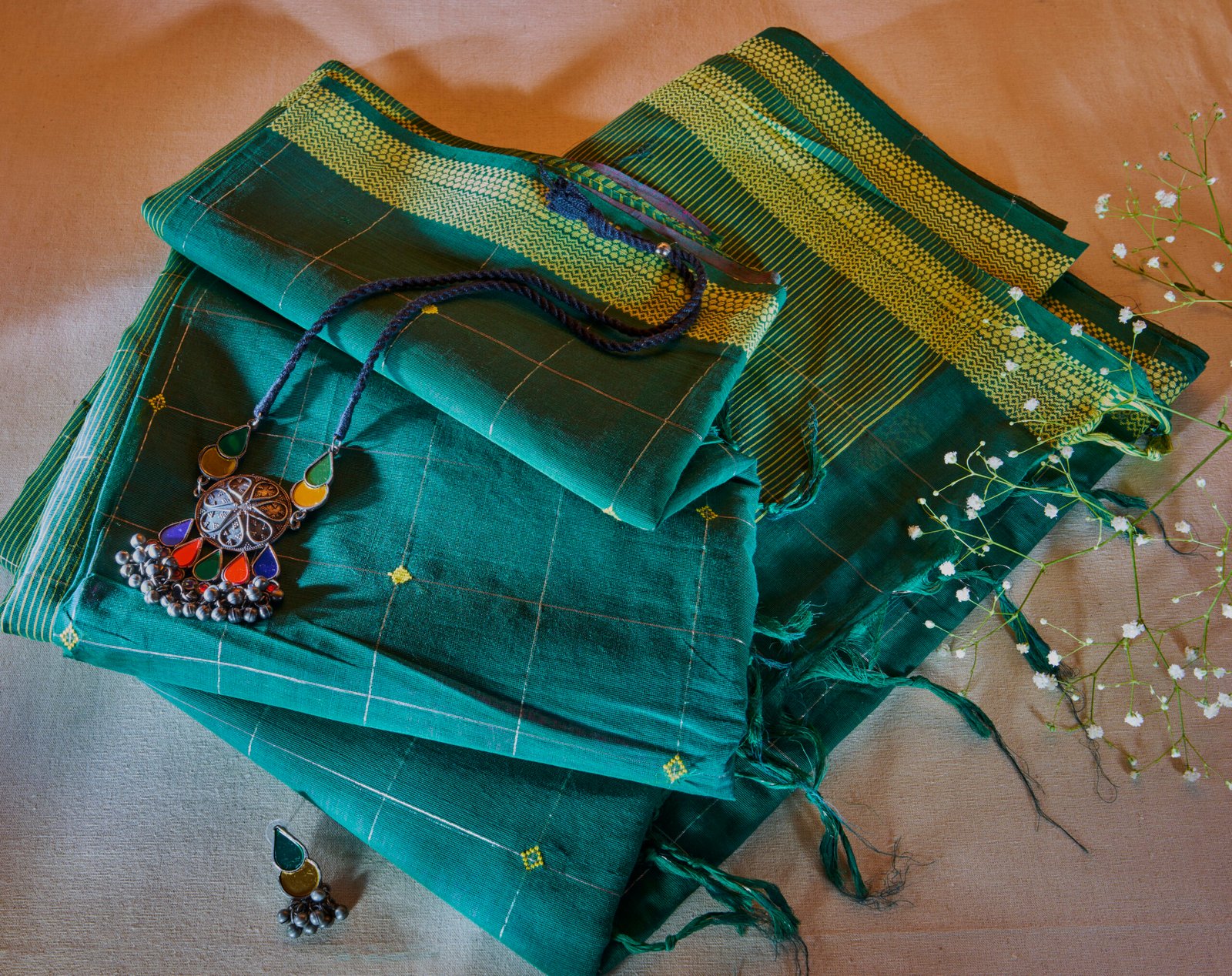Be the first to review “Cotton Handloom Green Ponduru Saree”