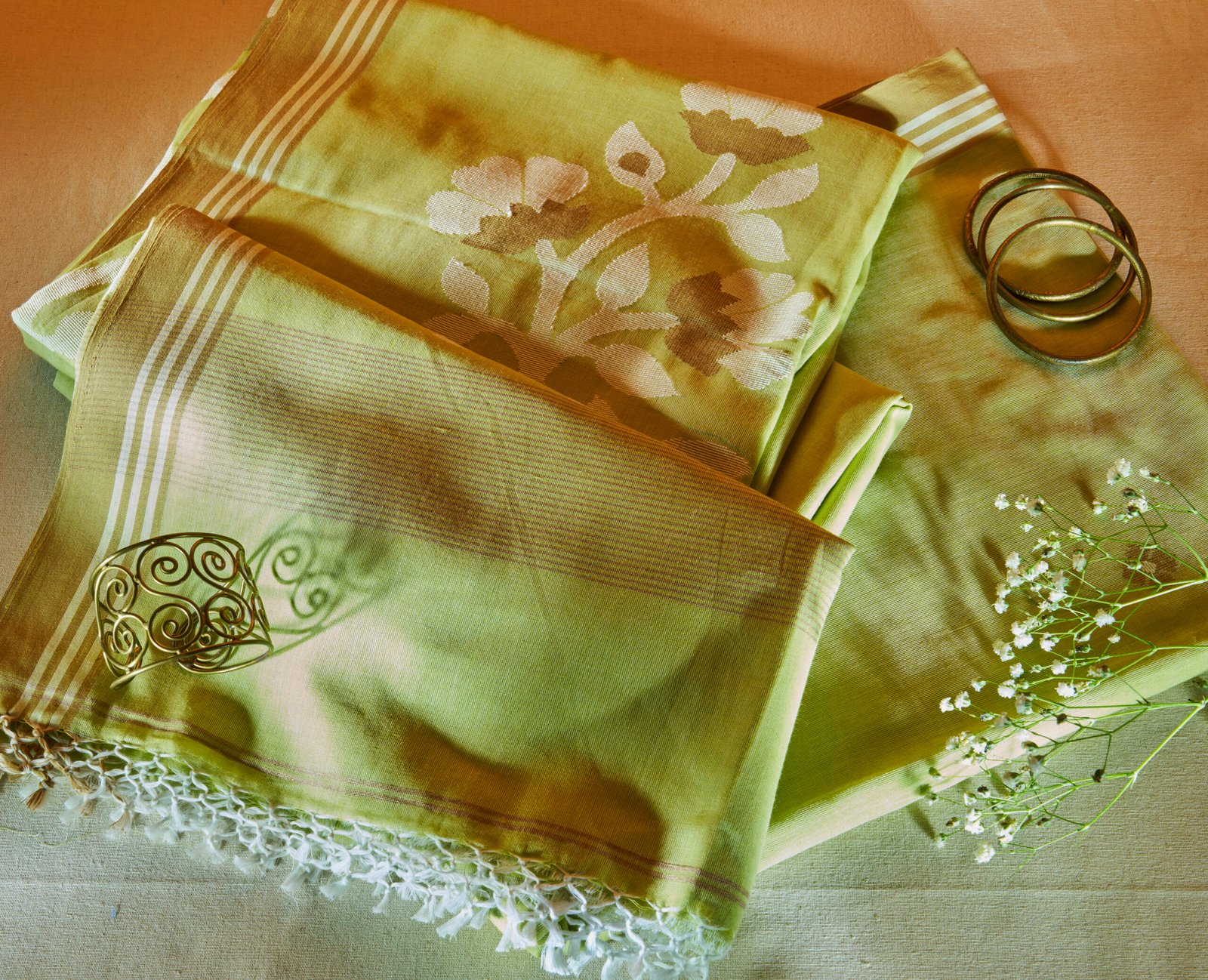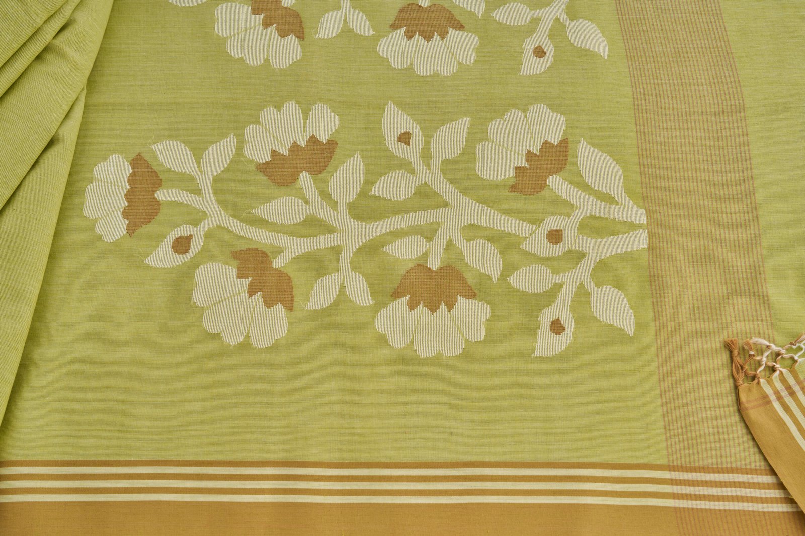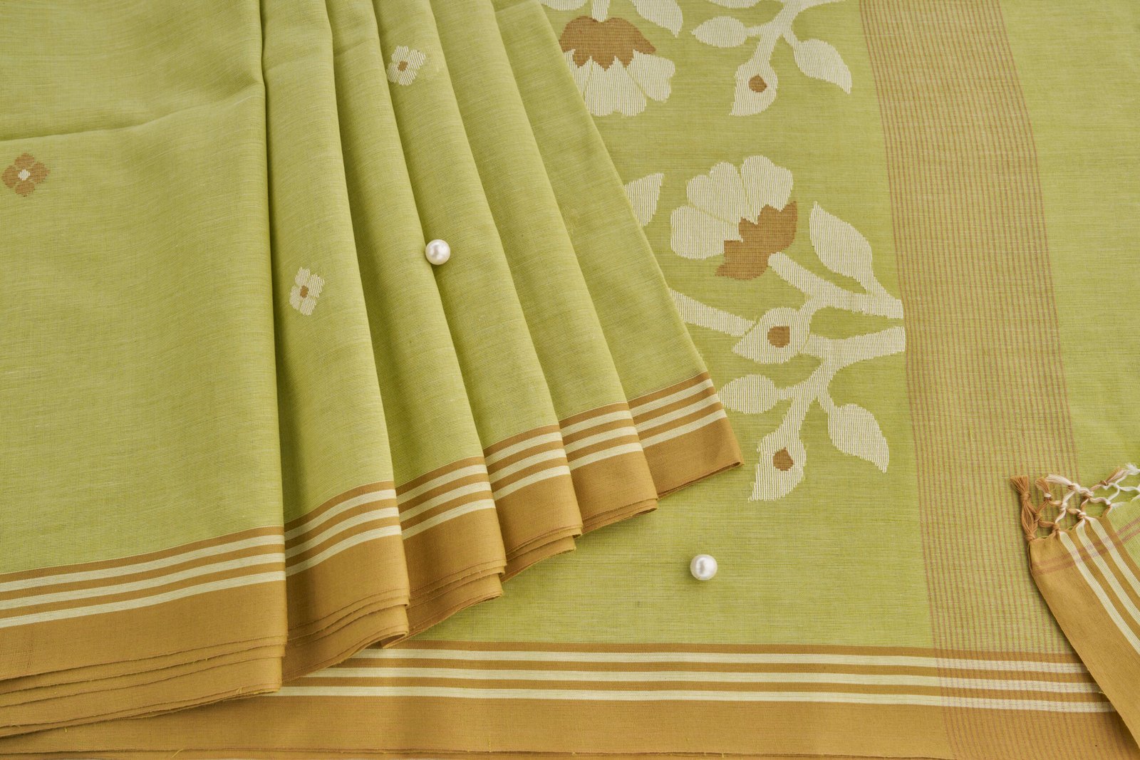 Discover the perfect blend of style and tradition with our Moss Green Cotton Handloom Jamdani Saree. Crafted meticulously by skilled artisans using the age-old Jamdani weaving technique, this saree showcases unparalleled craftsmanship and sophistication. Its subtle moss green hue exudes understated elegance, making it an ideal choice for both casual and festive occasions.