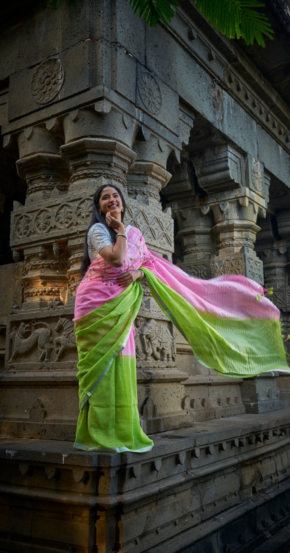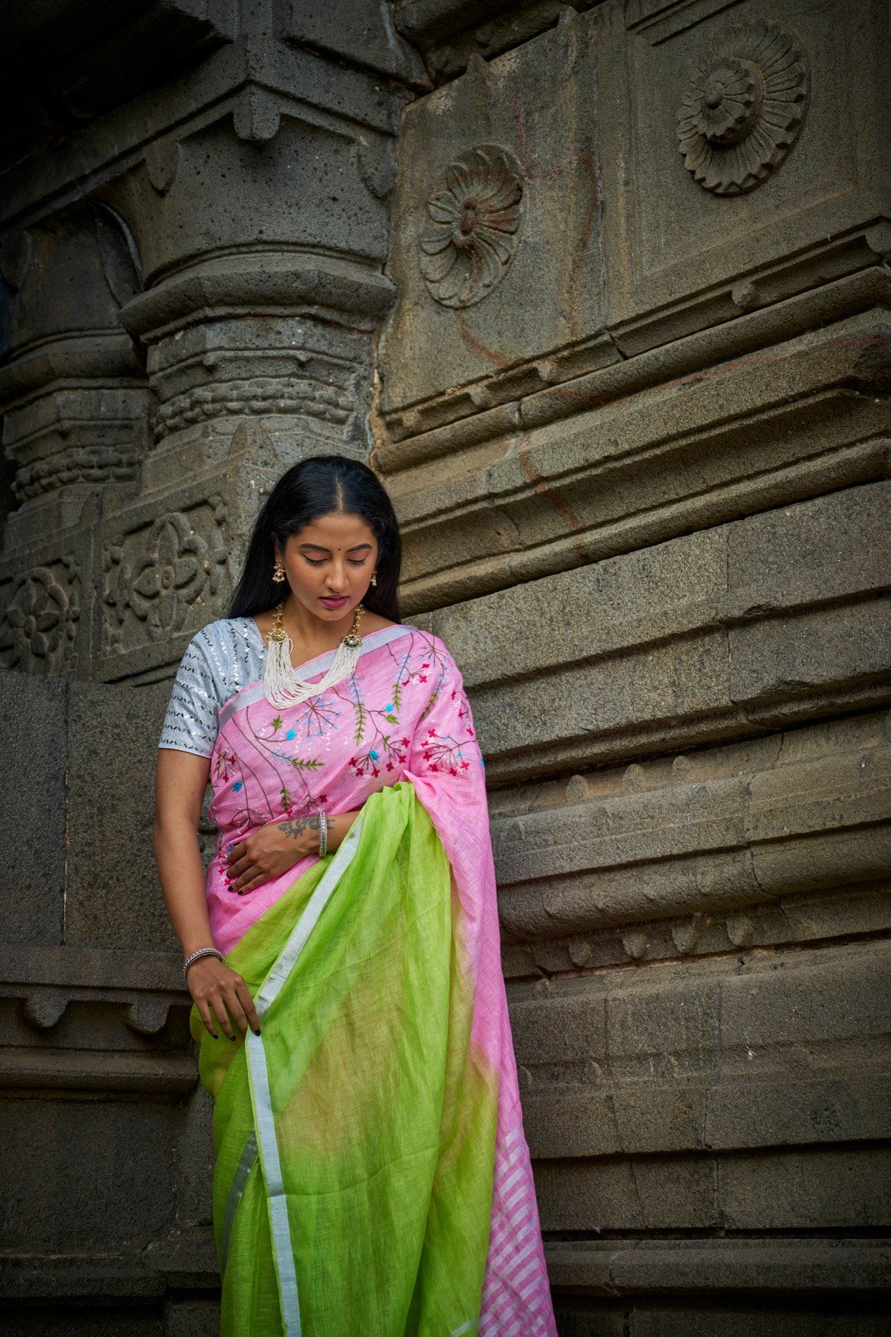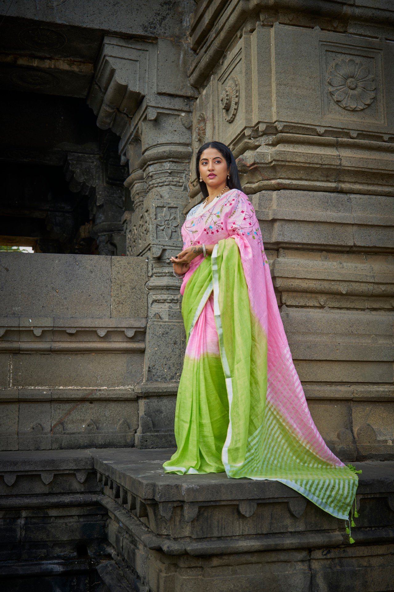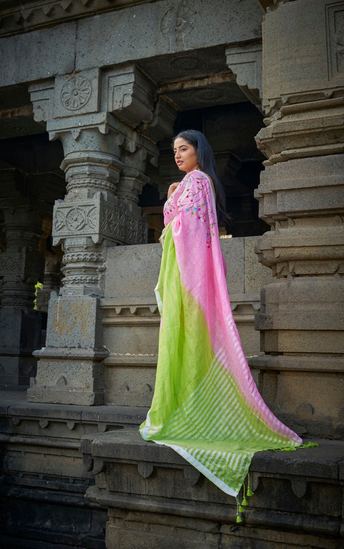 Handloom linen is renowned for its exceptional qualities. Its natural fibers allow for superior breathability, keeping you cool and comfortable even in warm weather. The lightweight nature of the fabric makes it easy to drape and manage, while its inherent strength ensures durability. Whether you’re attending a festive celebration, a formal event, or simply want to add a touch of elegance to your everyday look, this fluorescent green linen saree is a versatile choice. Embrace the beauty of handloom and experience the difference.